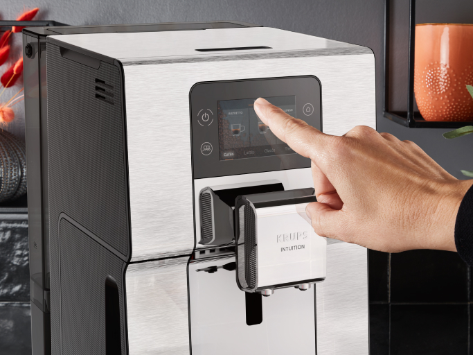 Graficky príjemné používateľské prostredie zobrazené na najlepšom 3,5" TFT displeji vo svojej triede je len začiatok. Kávovary KRUPS Intuition Experience+ sú vybavené technológiou Smart Slide, vďaka ktorej je ovládanie také jednoduché, ako v prípade mobilného telefónu. Širokým výberom nápojov môžete prechádzať pomocou záložiek podľa typu kávy alebo jednoduchým listovaním prstom. Navyše v každom rohu displeja sú dotykové tlačidlá, ktoré slúžia ako skratky k dôležitým funkciám kávovaru.