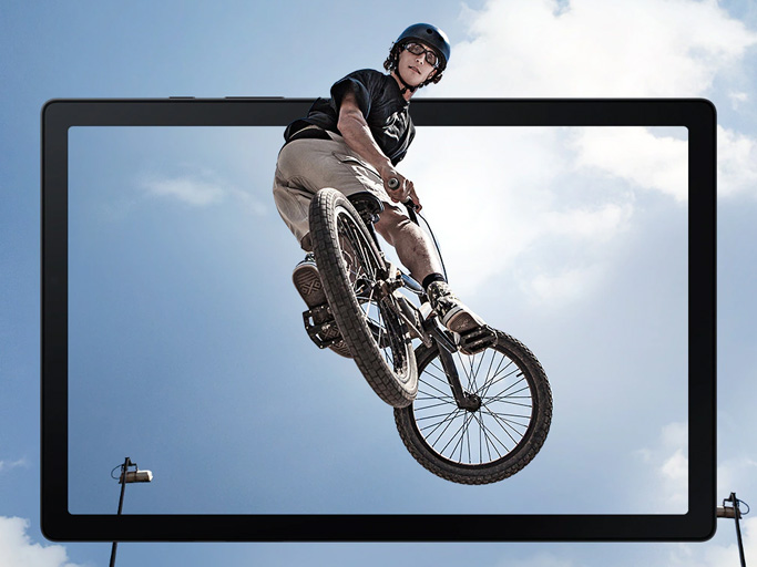 Široký 10,5" displej so symetrickými rámčekmi s veľkosťou iba 10,2 mm, vám umožní sa naplno ponoriť sa do akéhokoľvek práve sledovaného obsahu. Budete tak môcť objavovať nové miesta a veci úplne bez kompromisov. Od epických filmov po inštruktážne videá, Galaxy Tab A8 vás pozýva do rozľahlého sveta s väčším a širším výhľadom.